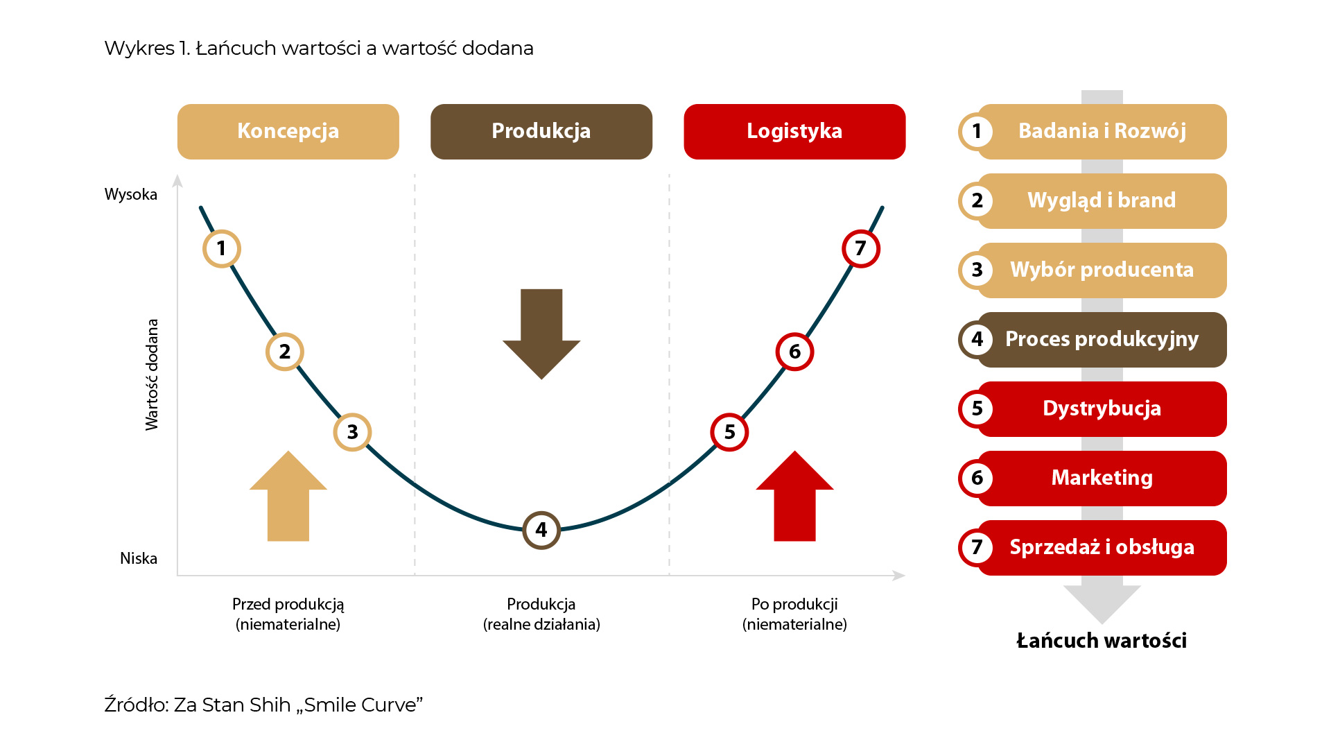 Bardzo dobrze pokazuje to poniższa grafika, którą Stan Shih nazwał Smile Curve, czyli „Krzywą uśmiechu”.
