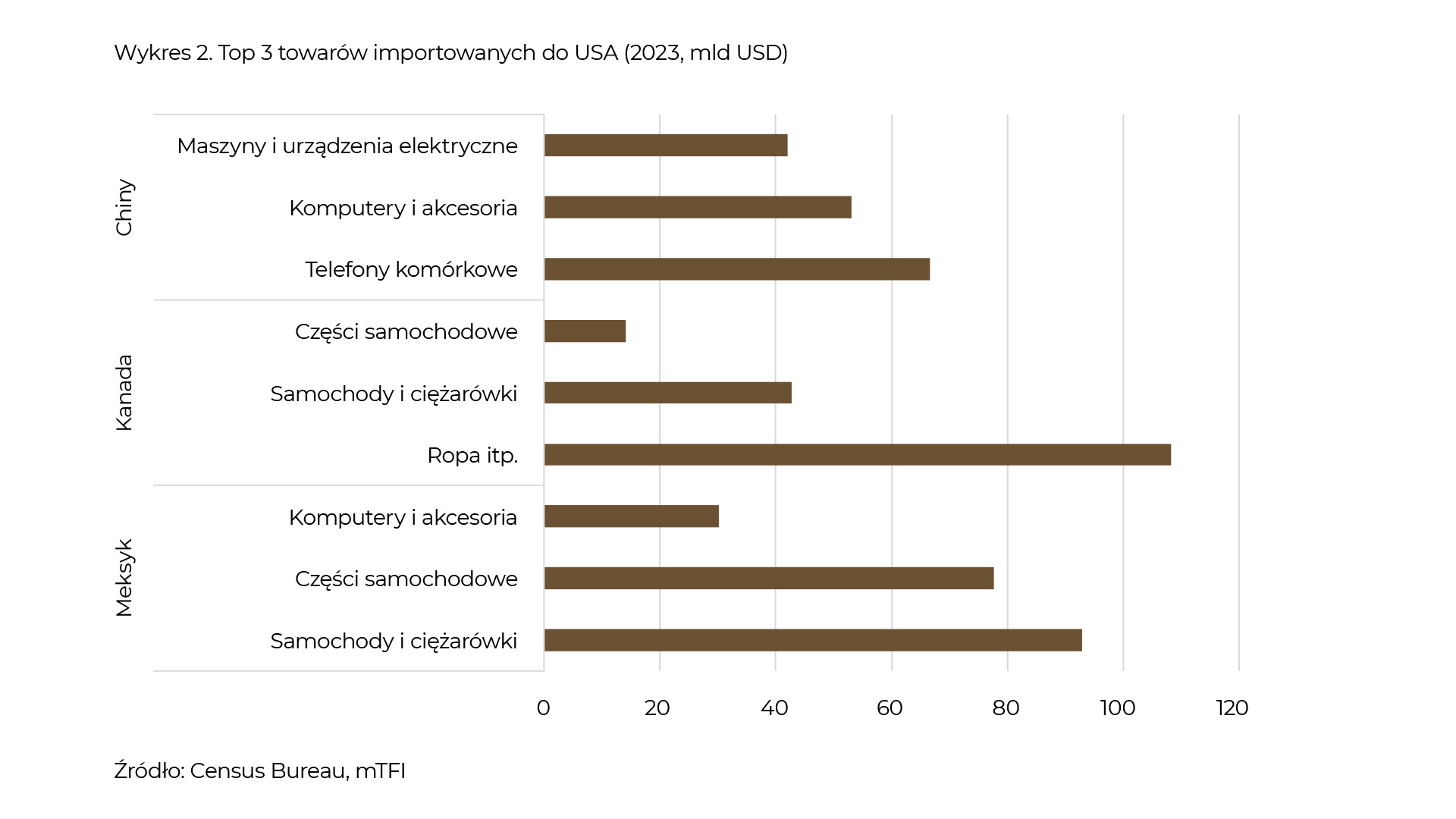 Administracja Trumpa początkowo najbardziej uwzięła się na trzy kraje: Meksyk, Kanadę i Chiny. Spójrzmy zatem, jak wygląda struktura importu USA.