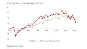 Dla tych, którzy pamiętają stare gry planszowe takie jak Eurobusiness, można było wylosować kartę, która cofała na start, ale bez możliwości otrzymania standardowej wypłaty. Jeśli spojrzymy na sytuację, jaka ma miejsce w ostatnich kilkudziesięciu miesiącach, to trochę rzeczywiście tak to wygląda. Wykres 4 pokazuje wynik indeksu S&P500 oraz hipotetycznego indeksu złożonego z technologicznego Nasdaq oraz Russell 2000, czyli indeksu mniejszych spółek.