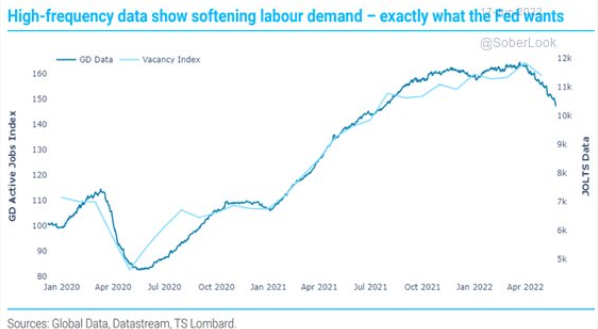 a zatrudnienie dotychczas rosło. Tutaj jednak również pojawiają się rysy. Wykres poniżej podejrzany w TS Lombard pokazuje, że liczba nowych miejsc pracy zaczęła ostatnio spadać.