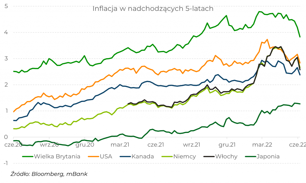 Może dla części Czytelników wyda się to elementem krótkiego opowiadania science-fiction, ale w ostatnim tygodniu rynek wyraźnie dał nam do zrozumienia, że inflacja spadnie. Wykres poniżej pokazuje wycenianą przez rynek średnią inflację