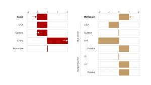 Jedna jaskółka wiosny nie czyni, ale analiza danych z chińskiej gospodarki wskazuje, że nasza hipoteza o przyspieszeniu zdaje się potwierdzać. Dość stwierdzić, że w przeciwieństwie do wielu krajów, PMI dla Chin za czerwiec istotnie odbił, co naszym zdaniem przyciągnie jeszcze większe zainteresowanie rynkiem akcji. Dlatego też oprócz ogólnego zwiększenia alokacji na akcje przesuwamy Chiny na „+2” w naszej alokacji. Robimy to tym razem kosztem Europy, gdzie w dalszym ciągu ogniskuje się wiele ryzyk związanych z cenami energii, geopolityką i wzrostem gospodarczym.