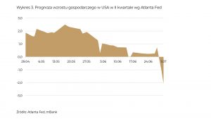 Wynika to z diametralnego pogorszenia się oczekiwań odnośnie wzrostu gospodarczego. Oddział Rezerwy Federalnej z Atlanty stara się na bieżąco modelować prognozy wzrostu gospodarczego. Jak to działa? W zasadzie codziennie przychodzą jakieś dane, a Atlanta Fed „wrzuca” je do swojego ekonometrycznego modelu i publikuje uaktualnioną prognozę na bieżący kwartał. Wykres 3 prezentuje trajektorię prognoz na II kwartał