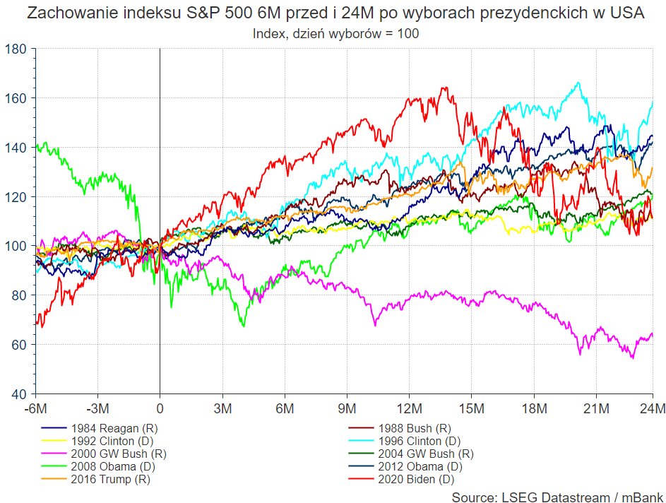 – jak zachowa się rynek akcji po wygranej Trumpa, a jak po wygranej Harris