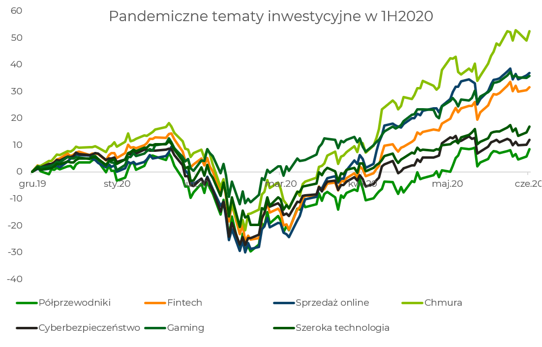 W otoczeniu niepewności warto jednak zawsze spojrzeć wstecz i poszukać analogii do historii. Cofnijmy się więc nawet do czasu pierwszego półrocza 2020 roku, żeby przypomnieć sobie, jak szybko rynek akcji, a szczególnie spółki technologiczne otrząsnęły się po pierwszym szoku związanym z pandemią. Otoczenie spadających stóp procentowych i wyjątkowej odporności technologii okazało się mieszanką iście wybuchową i pozwoliło bardzo szybko wybranym tematom inwestycyjnym najpierw wymazać straty z pierwszej połowy marca, a potem istotnie poprzebijać historyczne szczyty.