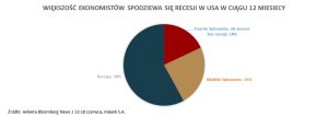 Ekonomiści ankietowani przez agencję Bloomberg w 58% spodziewają się recesji w następnych 12 miesiącach. Warto dodać, że pesymizm wśród nich spada, bo jeszcze w czerwcu i w kwietniu wartości te wynosiły 63% i 67% odpowiednio.