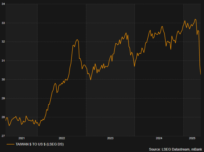 Skończyło się tym, że tajwański bank centralny musiał interweniować na rynku walutowym. Sytuacja uspokoiła się, ale pierwsze widoczne skutki zawirowań z ostatnich tygodni to zwiększenie dywersyfikacji portfeli tajwańskich ubezpieczycieli i mniejszy popyt na amerykańskie obligacje. I ten trend może być kontynuowany.