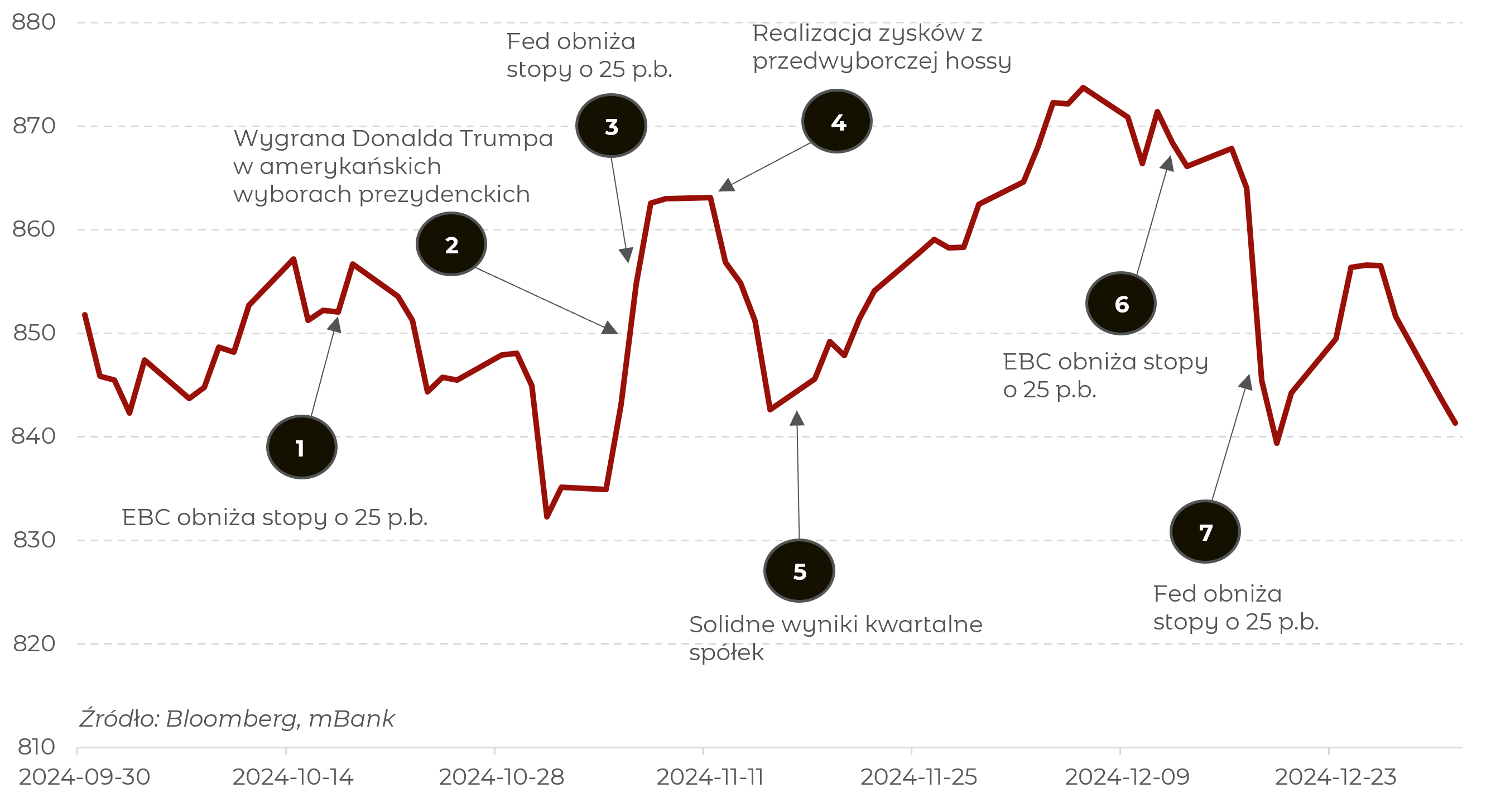 - Kolejna obniżka stóp procentowych przez EBC oraz zapowiedź kolejnych cięć w 2025 roku.