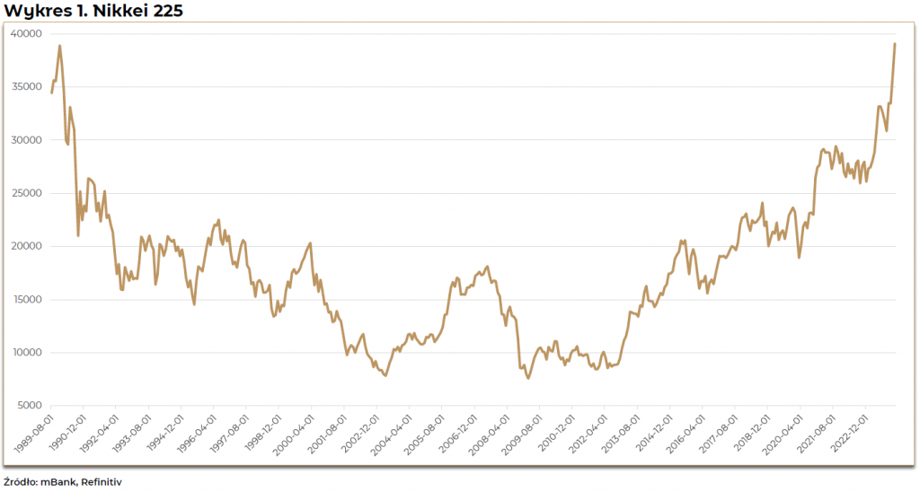 Skok wartości indeksu, o imponujące 17% od początku 2024 roku, uczynił Nikkei najlepiej prosperującym indeksem (YTD) wśród indeksów rynków rozwiniętych.