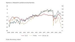 Nic więc dziwnego, że światowy konsument nie jest zachwycony. Wskaźniki zaufania prezentujemy na wykresie poniżej.