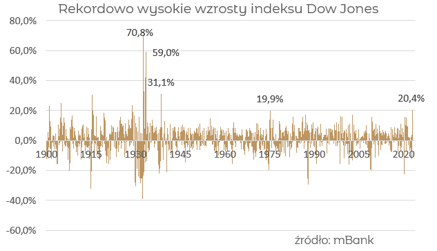 Z danych za listopad dowiadujemy się, że np. mediana prognozowanej ceny docelowej dla indeksu S&P 500 na połowę przyszłego roku wynosi 4 100 pkt, oraz 4 200 pkt na koniec roku. Mając na uwadze obecny poziom indeksu (ok. 4 000 pkt) potencjał wzrostu wydaje się raczej ograniczony. Po bardzo słabym roku z jakim mieliśmy właśnie do czynienia naturalnym jest zachowanie bardziej defensywne. O tym jak bardzo pesymistycznie są nastawieni do rynku tzw. analitycy sell side wg. Ankiety BofA mówiliśmy w ostatnim odcinku “widoków z wieży”. Chociaż z drugiej strony poziom pesymizmu może być zastanawiający po dwóch najlepszych miesiącach dla indeksu Dow Jones od ponad 80 lat.