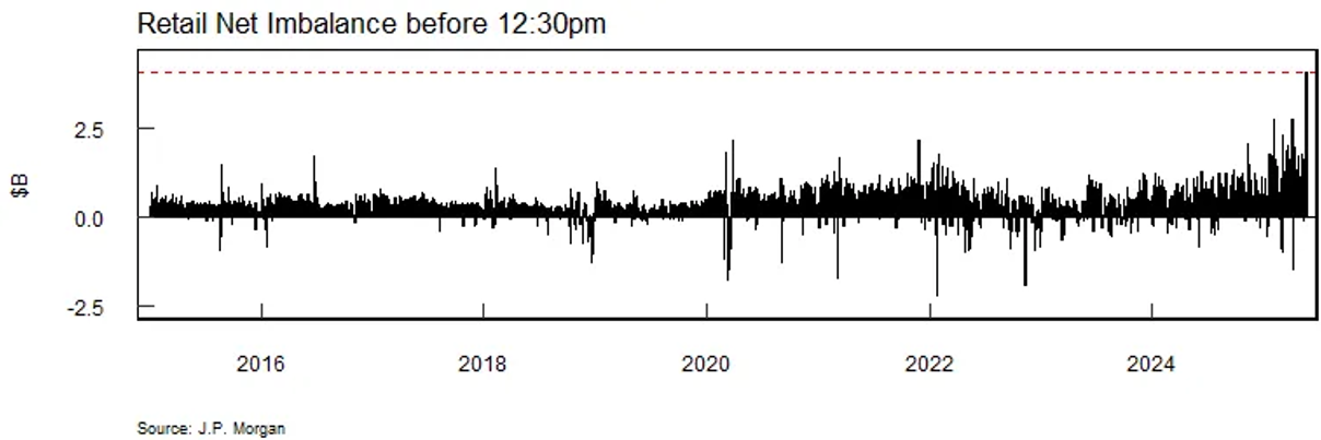 Napływy netto inwestorów indywidualnych do amerykańskich akcji przed godziną 12:30