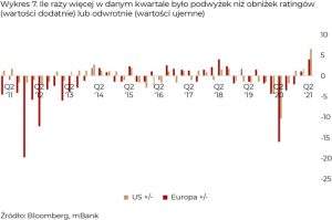 Zaczynają to dostrzegać agencje ratingowe, które coraz częściej podwyższają oceny wiarygodności (czyli właśnie ratingi) firm. Pokazujemy to dla USA i Europy Zachodniej na wykresie 6.