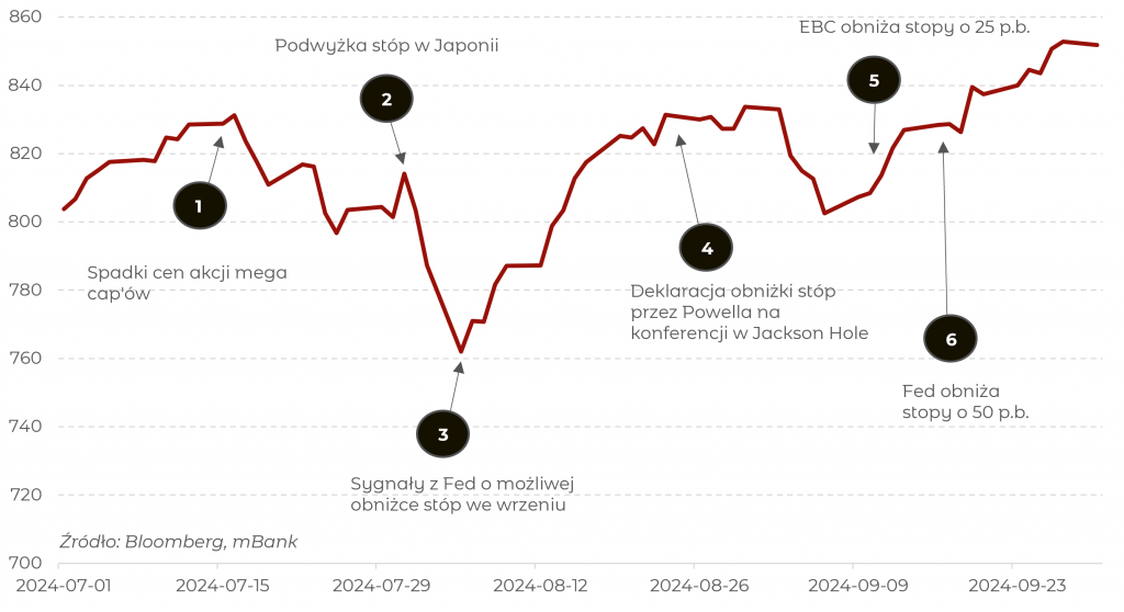 Wykres 1. Notowania globalnych akcji (indeks MSCI ACWI) w III kwartale 2024 roku.