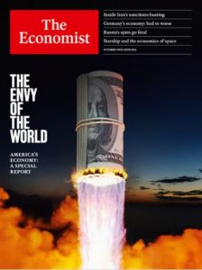 - Z najnowszych prognoz MFW wynika, że gospodarka amerykańska jest najjaśniejszym punktem na świecie. Ostatnia okładka tygodnika The Economist też mówi, że USA są „obiektem zazdrości całego świata” (The Envy of the World). A takie rzeczy lubią być wskaźnikami kontrariańskimi.