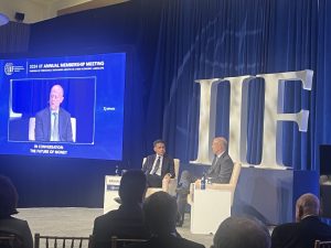 Warto też zauważyć, że globalna finansjera otwiera się na nowe technologię, tokenizację, kryptowaluty itd. Są to tematy jak najbardziej tu obecne. Króluje dość ostrożne podejście, powolna implementacja rozwiązań i idee łączenia klasycznych finansów z nową finansową technologią. Symbolem tej zmiany jest chyba…. strój przedstawiciela świata krypto. Już wyjaśniam: 2 lata temu Bartek wysłał do mnie zdjęcie zaproszonego do panelu na konferencji Sama Bankman-Fried, niesławnego założyciela giełdy FTX (dla przypomnienia po upadku FTX Bankman-Fried siedzi w więzieniu). Nie byłoby w tym nic dziwnego gdyby nie to, że na zdjęciu występował on w krótkich spodenkach pośród tych wszystkich „krawaciarzy”. Dziś swoje wystąpienie miał Jeremy Allaire, założyciel Circle, spółki zarządzającej największym stablecoinem na świecie. Waluta zupełnie inna (pełne pokrycie w rządowych papierach USA i wartość równia 1USD) i pełen garnitur z krawatem Pana Allaire. Może to za daleko idąca konkluzja, ale symbolicznie widać, że światy starych finansów i krypto mocno się do siebie zbliżyły.